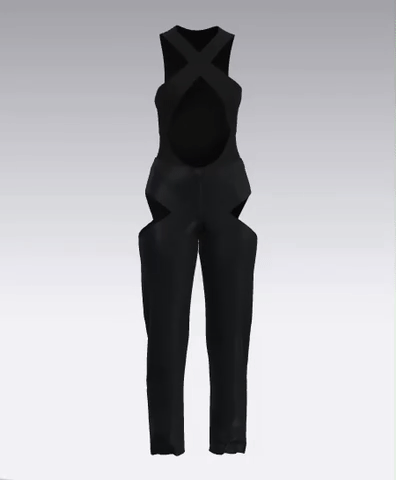 DENIM PANT WITH CUTOUTS AND FULL CROTCH ZIPPER